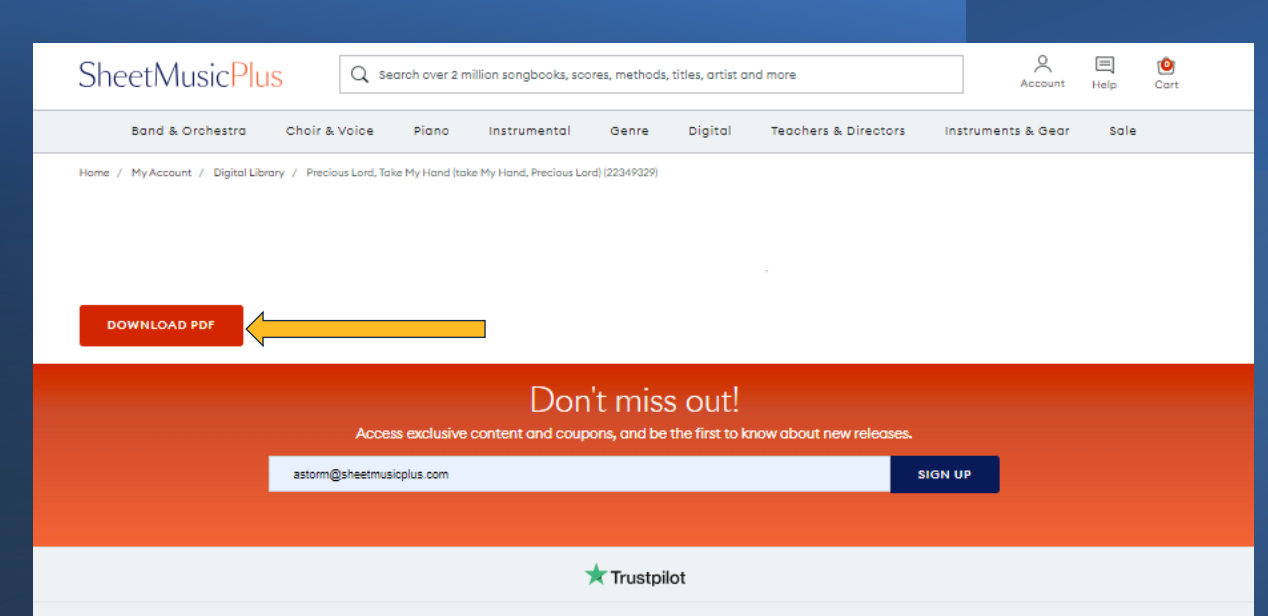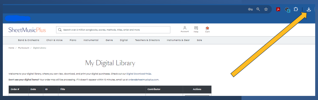 You should see your music purchase(s) on the screen. Click the Download/Print icon located under the Actions heading