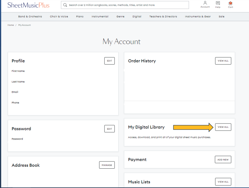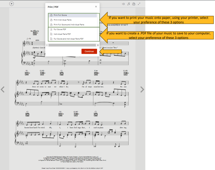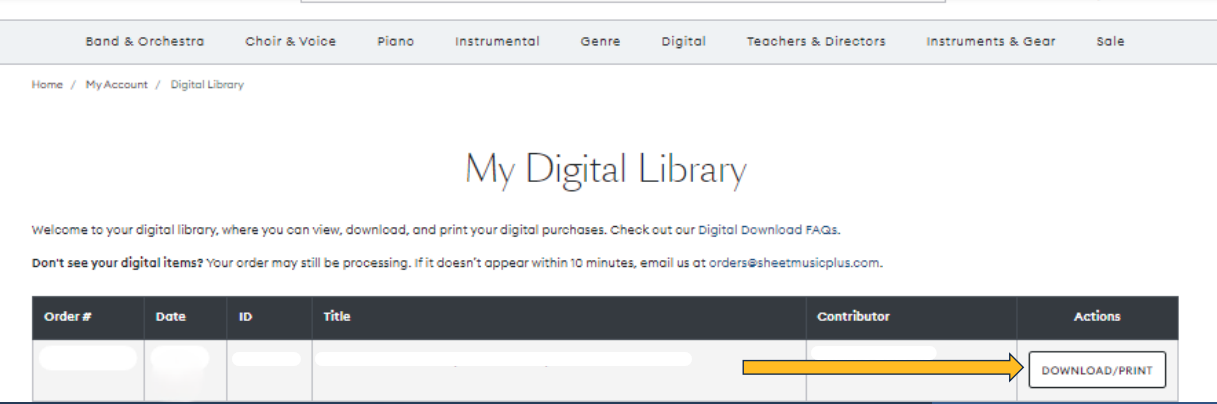 You should see your music purchase(s) on the screen. Click the Download/Print icon located under the Actions heading